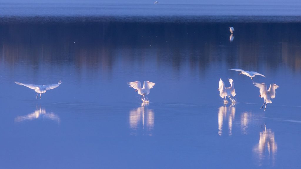 ‘The Great Egret Dance’ by Libby W, Adult SLR Winner (Oceans, Wetlands and Rivers).