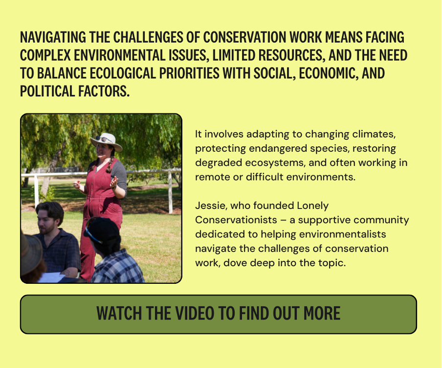 Jessie is raising awareness about the importance of making sure that conservationists and environmentalists are looked after, as it can oftentimes feel daunting to want to save the world.