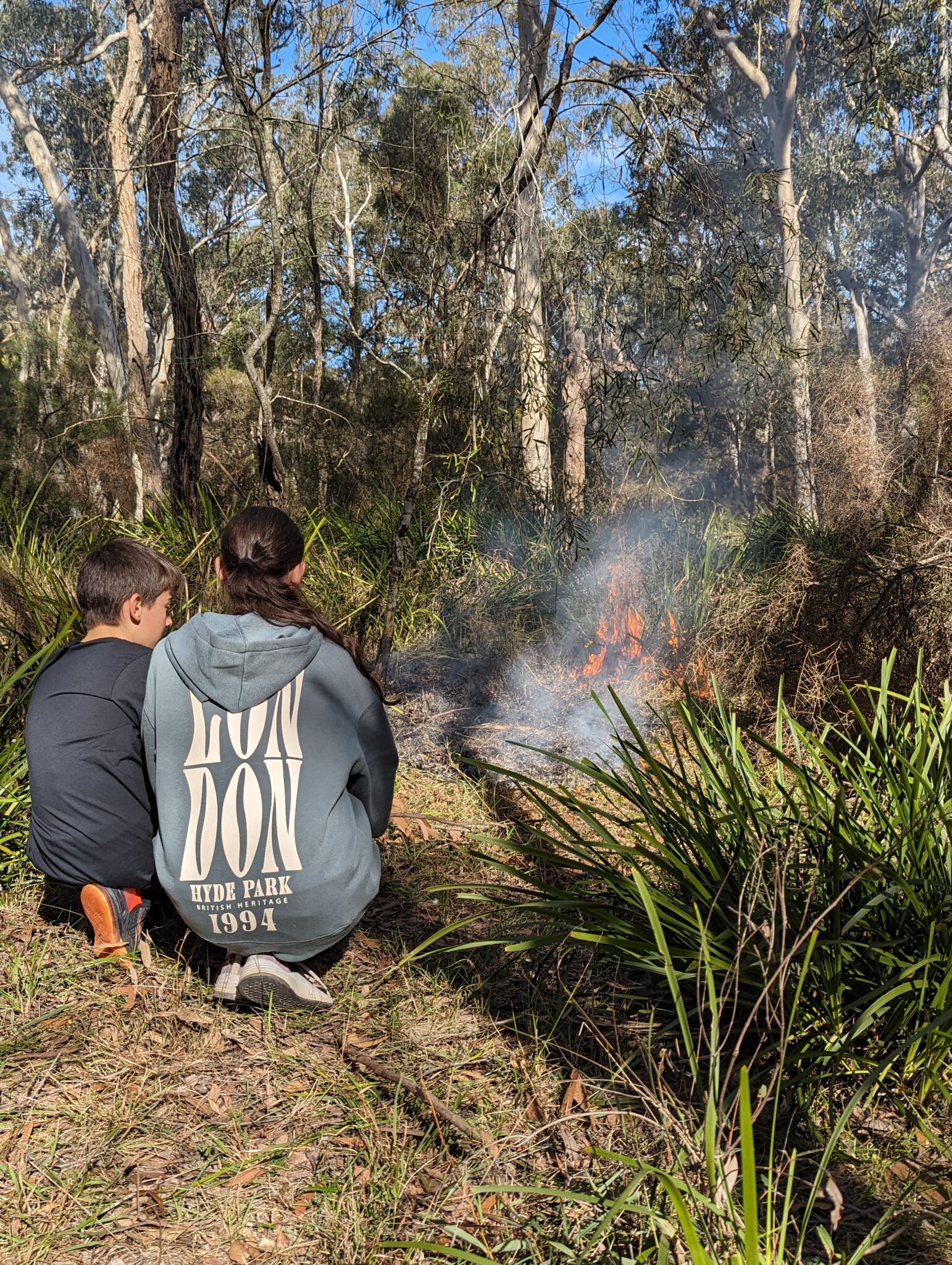 Dharug Traditional Owners have returned to Londonderry Woodlands Reserve in Burubiranggal Dharug Country with their families to deepen Cultural Fire knowledge. This meant the return of Cultural Fire to this part of Dharug Ngurra for the first time in 200 years or more. Learning about Cultural Fire supports the health and balance of Country, and strengthens the identity and wellbeing of the community too.